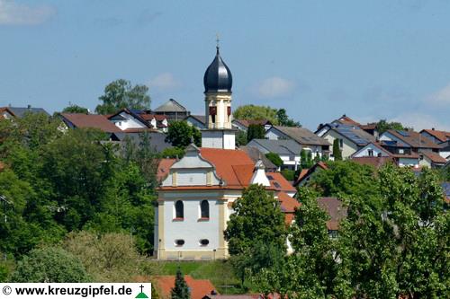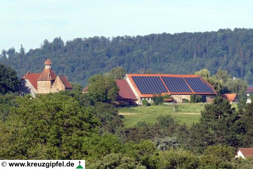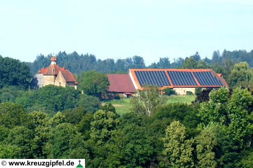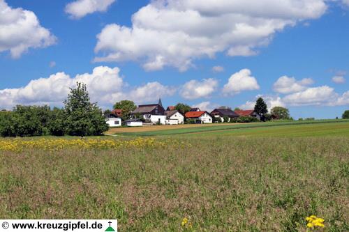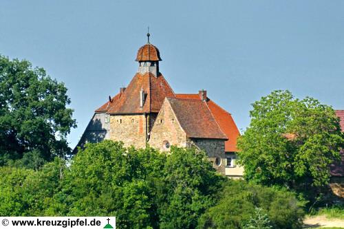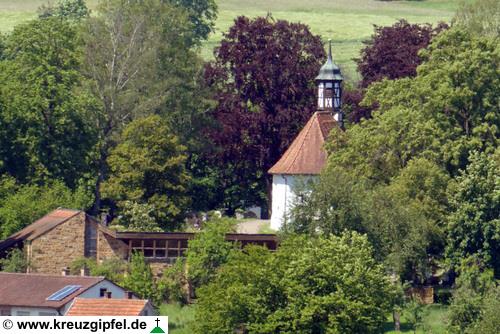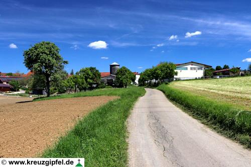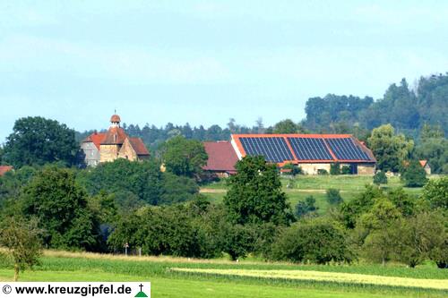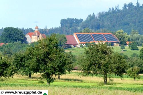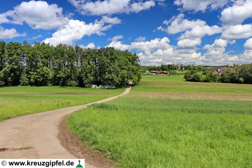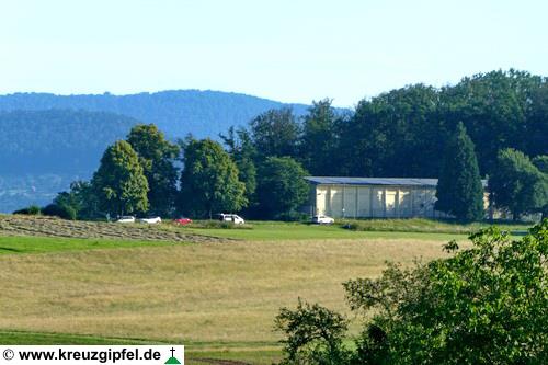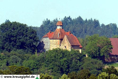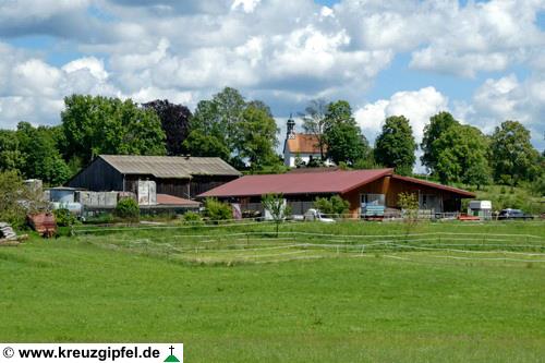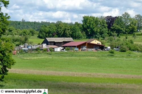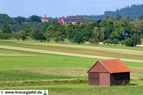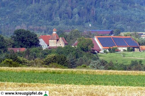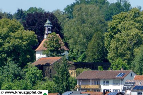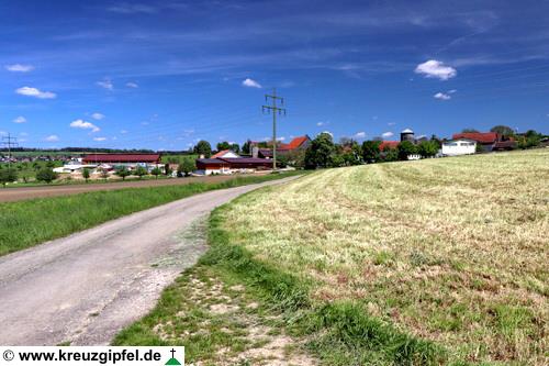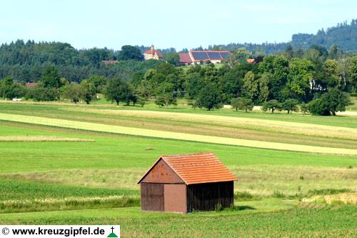 Dornunghof, dahinter die Friedhofskapelle